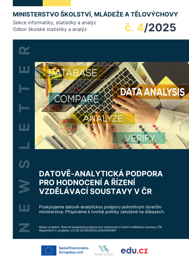 Přinášíme Vám čtvrté číslo newsletteru projektu Datově analytická podpora pro hodnocení a řízení vzdělávací soustavy ČR (webová stránka projektu). V newsletteru najdete výběr z aktuálních analýz, doporučení z odborných panelů a informace o realizovaných a plánovaných výzkumech.