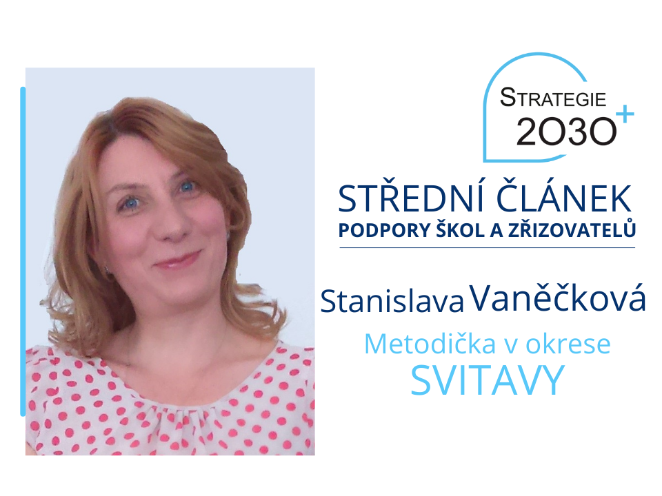 V pilotním okresu Svitavy působí od 1. září 2021 Stanislava Vaněčková. Na pozici metodičky posílila dosavadní tým, který zde poskytuje podporu mateřským a základním školám. Jejím životním mottem je „Když se chce, všechno jde“.