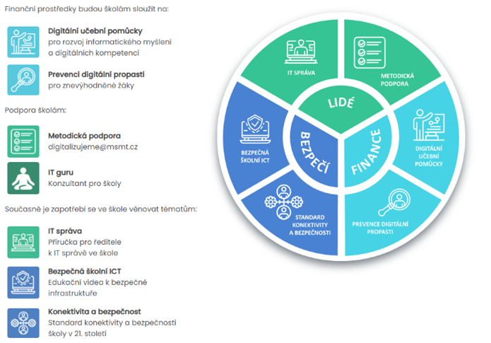 Cílem je, nejen aby byly prostředky z Národního plánu obnovy na ICT vybavení vynaloženy co nejefektivněji a aby z nich měly školy co největší užitek, ale i motivace vedení škol řešit svou digitální infrastrukturu komplexně a strategicky.
