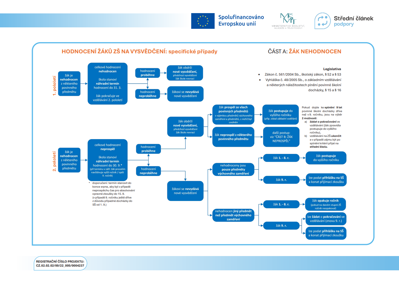 Infografiky připravené na základě podnětů z praxe přehledně shrnují legislativní rámec a doporučený postup v situacích, kdy žák není hodnocen nebo neprospěl. Materiály jsou určeny zejména ředitelům škol jako podpůrný nástroj pro rozhodování v souladu se školskou legislativou.
