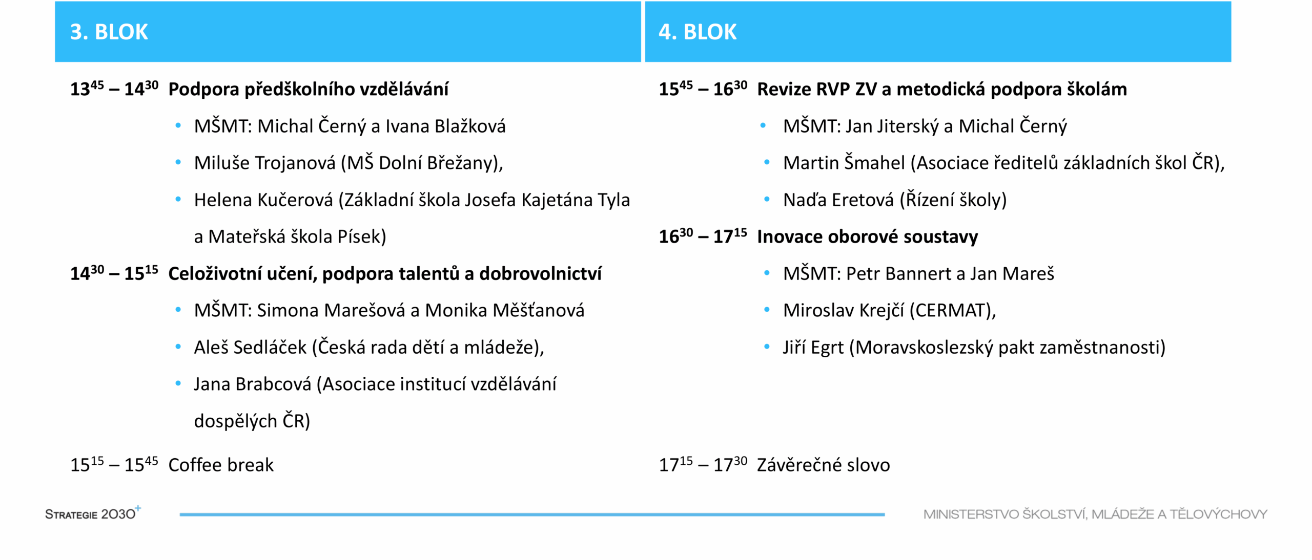 V rámci konference také proběhla diskuze s tvůrci Strategie o jejím naplňování a vizích, kam by mělo české školství směřovat. Velký prostor byl věnován představení konkrétních aktivit na další 4 roky, Vašim dotazům a podnětům k těmto aktivitám.