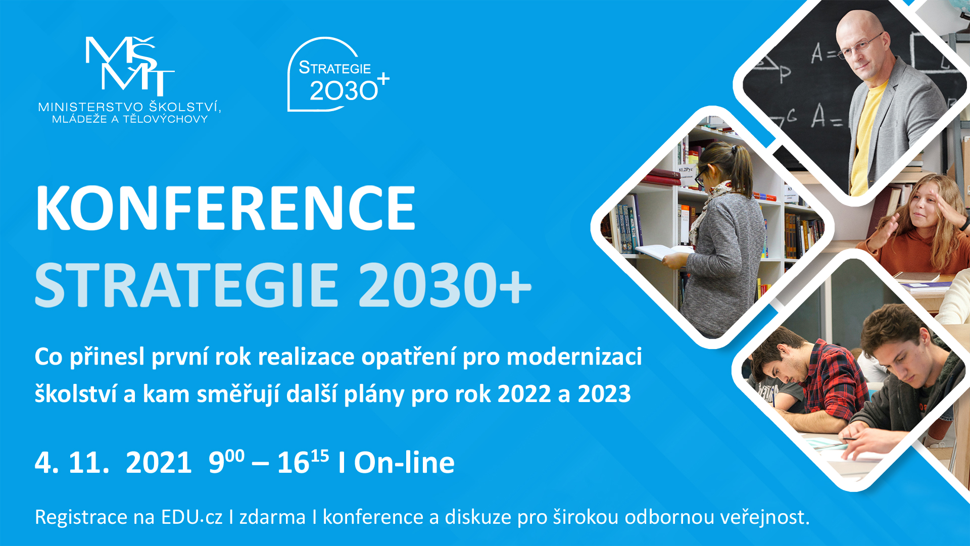 Strategie 2030+ je náš společný klíčový dokument pro rozvoj vzdělávací soustavy České republiky. Co se za první rok realizace událo? Kam budou směřovat další opatření a aktivity v roce 2022 a 2023? Jak probíhá modernizace vzdělávacího systému ČR v oblastech regionálního školství, zájmového a neformálního vzdělávání i celoživotního učení? Registrujte se na výroční konferenci ke Strategii 2030+. Online přenos bude probíhat na kanálu YouTube na tomto odkazu.