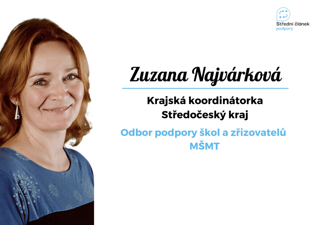 A proč si vybrala střední článek? “Těším se na to, že se stanu součástí Středního článku podpory, kde bude moci intenzivně spolupracovat se školami a zřizovateli, přispívat svými zkušenostmi a podávat pomocnou ruku, kdykoliv bude potřeba”, říká Zuzka Najvárková.