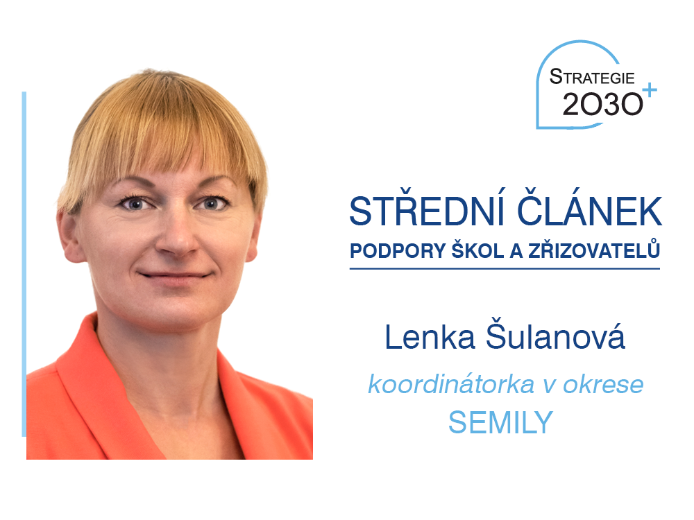 Lenka Šulanová je po odchodu Jaroslava Jirásko novou koordinátorkou středního článku podpory v okrese Semily. V týmu začínala 1. září 2021 jako metodička, od 1. srpna 2022 zde působí jako koordinátorka. Do středního článku přináší bohaté zkušenosti z pozice pedagožky, „projekťačky“ a také z veřejné správy. Společně se svými kolegy metodiky poskytuje podporu školám a zřizovatelům na Semilsku.