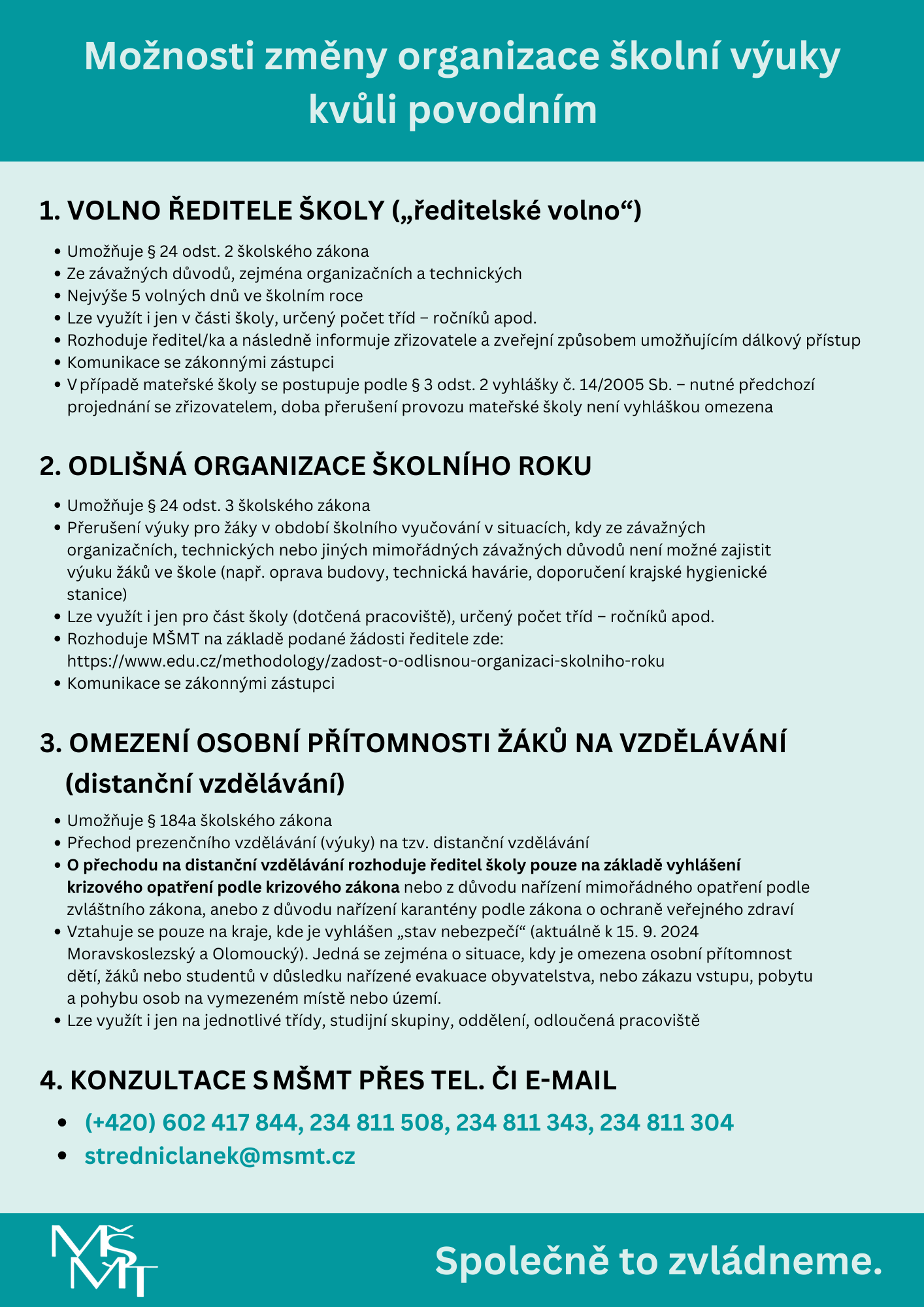 - Sdělujte informace o změnách ve výuce především rodičům přímými kanály, které škola běžně používá.