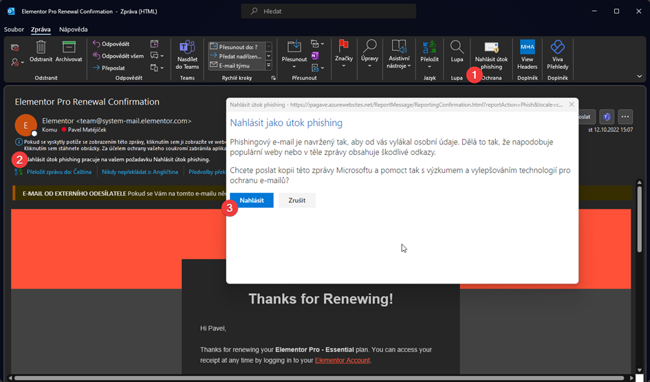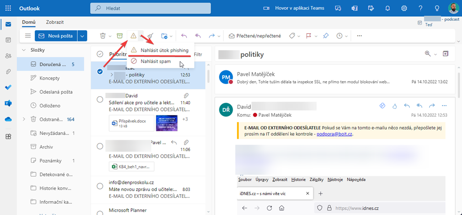 Jak hlásit Phising v Outlook