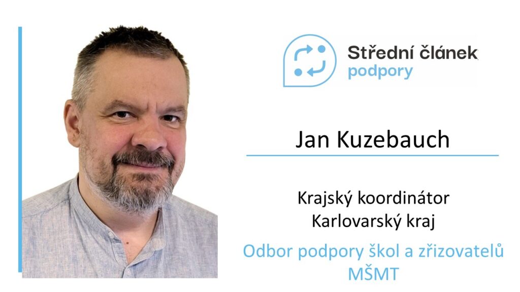 Jan Kuzebauch není ve Středním článku podpory žádným nováčkem. Na pozici krajského koordinátora působí už od dubna 2023, kdy se Karlovarský kraj připojil k pilotáži Středního článku. S projektem se tedy seznámil a získal potřebné know-how ještě před jeho spuštěním. Připočteme-li k tomu jeho profesní dráhu, dosavadní praxi a zkušenosti ze samosprávy, má karlovarský Střední článek podpory výborně „našlápnuto“.