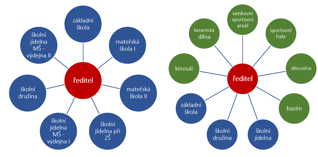 - Administrativní činnost ředitelů ZŠ je výrazně navyšována dalšími přidruženými aktivitami. Ačkoliv mají ředitelé větších škol k dispozici i více specializovaného personálu, přesto vždy zůstávají odpovědnou osobou, a to jak za školské činnosti (přidružená mateřská škola, školní jídelna atp.), tak za činnosti neškolské (např. sportovní areály v areálu školy fungující pro veřejnost). Velké množství neškolských středisek představuje významnou časovou zátěž pro vedoucí pracovníky školy, přičemž značná část těchto aktivit je spojena s přímou žádostí či nařízením ze strany zřizovatele.